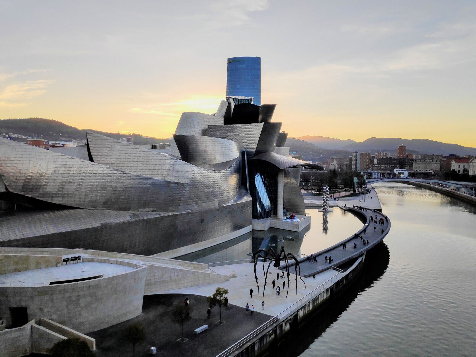 Музей в Бильбао с «натянутыми» ветром «парусами», делающими его похожим на фантастический парусник и скрывающими внутри белый куб экспозиционного пространства, принадлежало к числу самых любимых автором. Только в отличие от кровли в Панаме, «паруса» в Бильбао, сияющие матовым блеском, сделаны не из доступных материалов, а из титана. Отрывая филиал в Европе, Музей Гуггенхайма мог себе такое позволить. И помимо прочего, дорогой в обычной жизни титан был в те годы, благодаря щедрому демпингу из бывшего СССР, относительно дёшев.