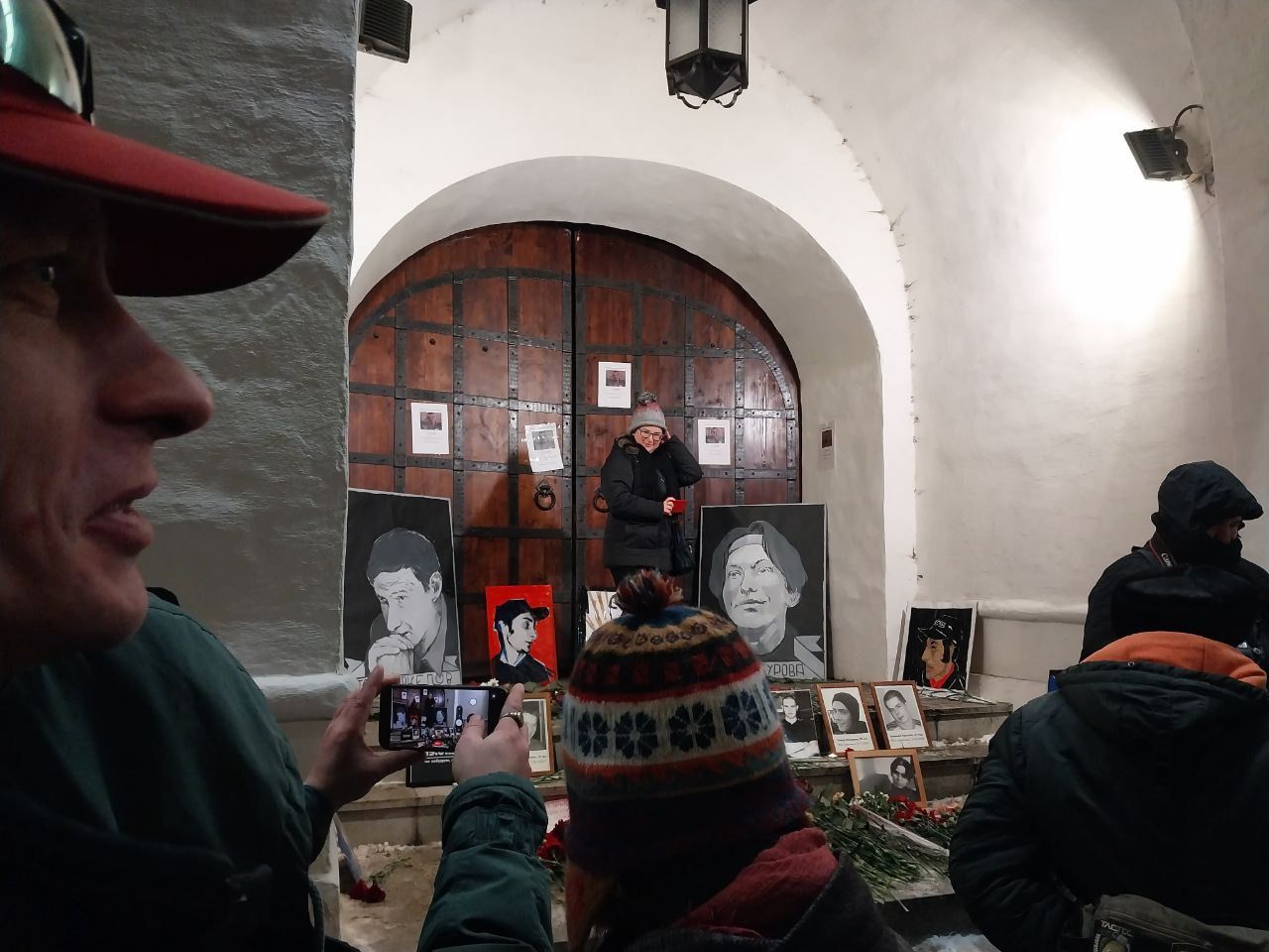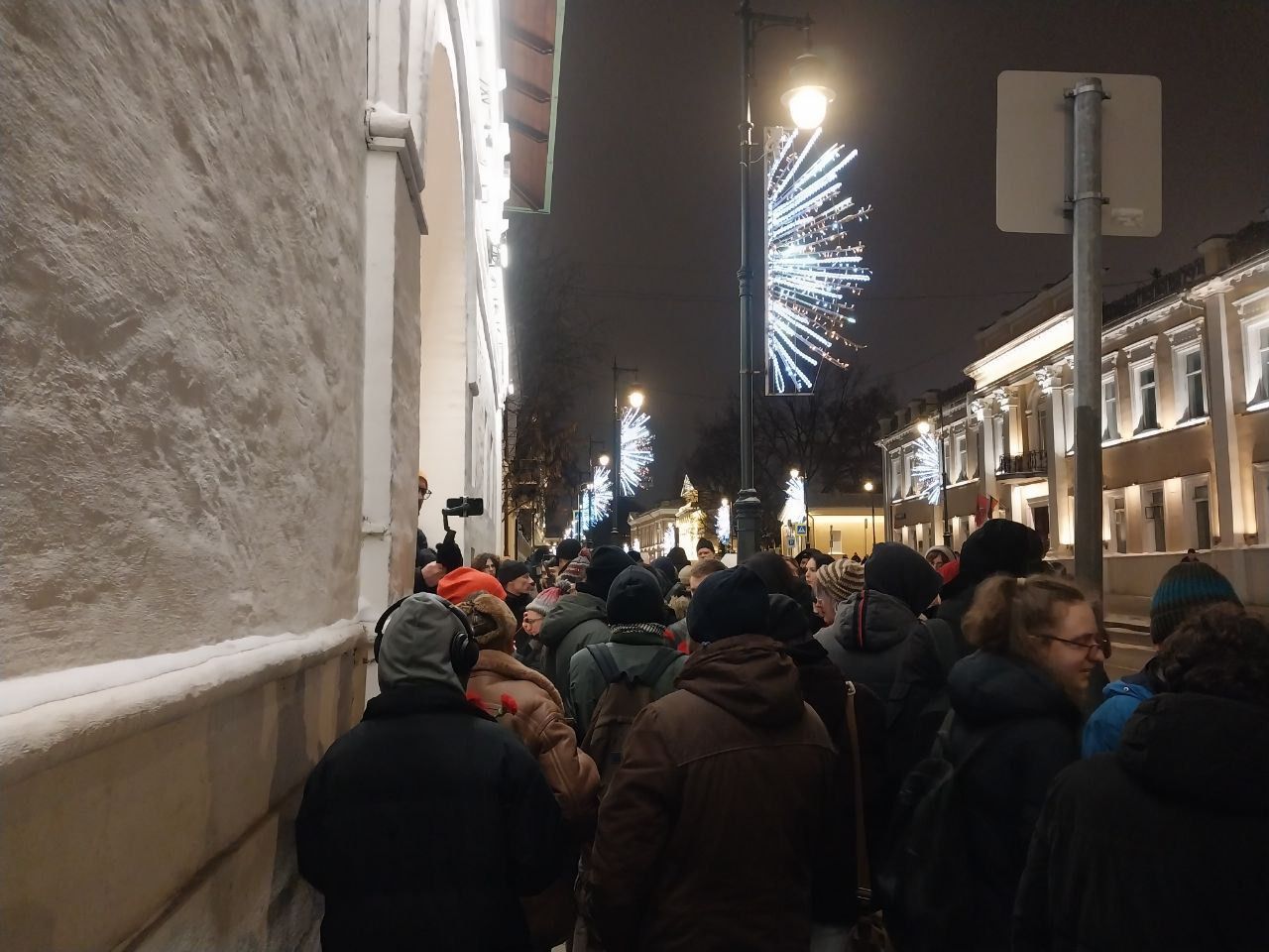 В вечерней акции памяти у Белых палат участвует около 50 человек — сотрудники «Мемориала», активисты движения «Молодёжный рассвет» Екатерины Дунцовой, участники «Гражданской инициативы», которые временно восстановили мемориал Политковской, и прочие активисты. Почти все они под конец акции сильно дрожат от холода. Кто-то даже вспоминает Зюганова, который ругал Путина за то, что тот зимой ходит без шапки.