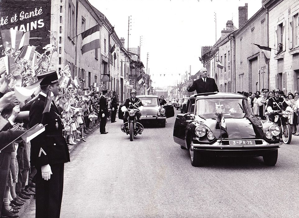 Президент Французской Республики Шарль де Голль, проезжающий через Иль-сюр-Сюипп, деревню в департаменте Марна, после своей поездки в Арденны, 22 апреля 1963 года. Фото: Wikipedia / Gnotype / CC BY-SA 3.0