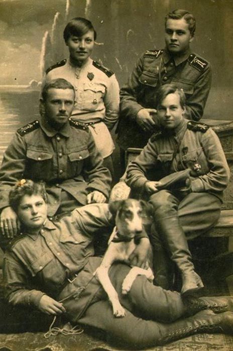 Младшие офицеры Дроздовской дивизии в Крыму, осень 1920 года. Как видно, наряду с мужчинами там служили и девушки. Фото: Wikipedia / неизвестный автор