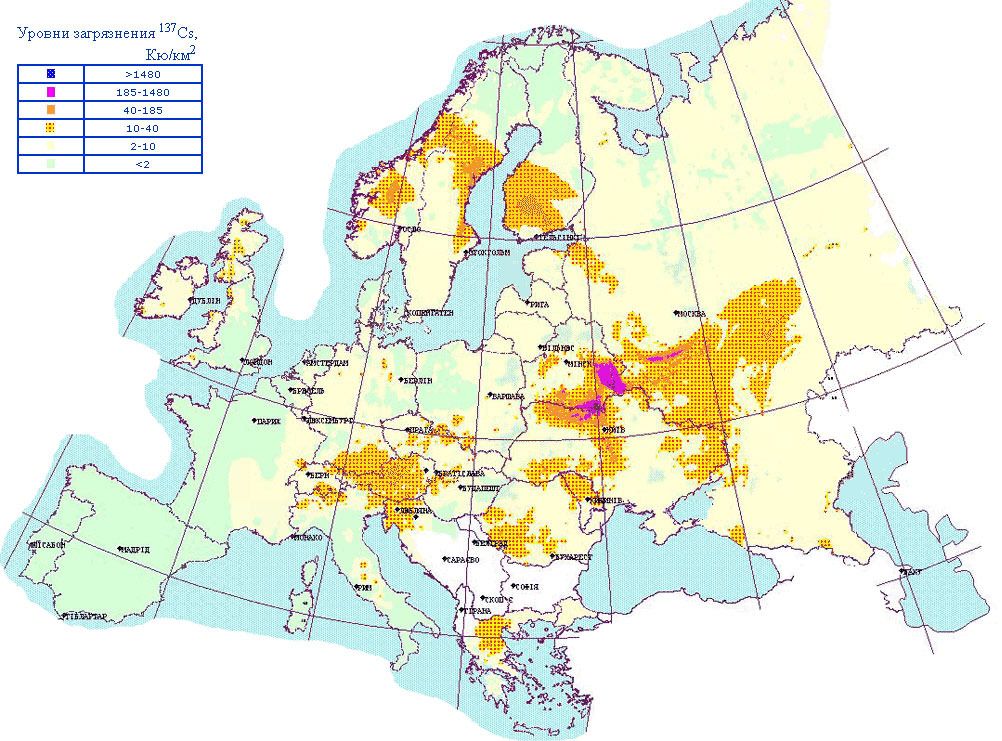 Распространение выбросов с ЧАЭС по Европе. Карта: chornobyl.ne