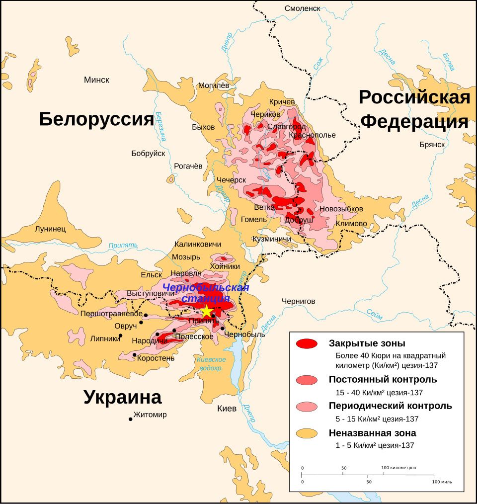 Последствия катастрофы на ЧАЭС по состоянию на 1996 год. Карта: Wikipedia