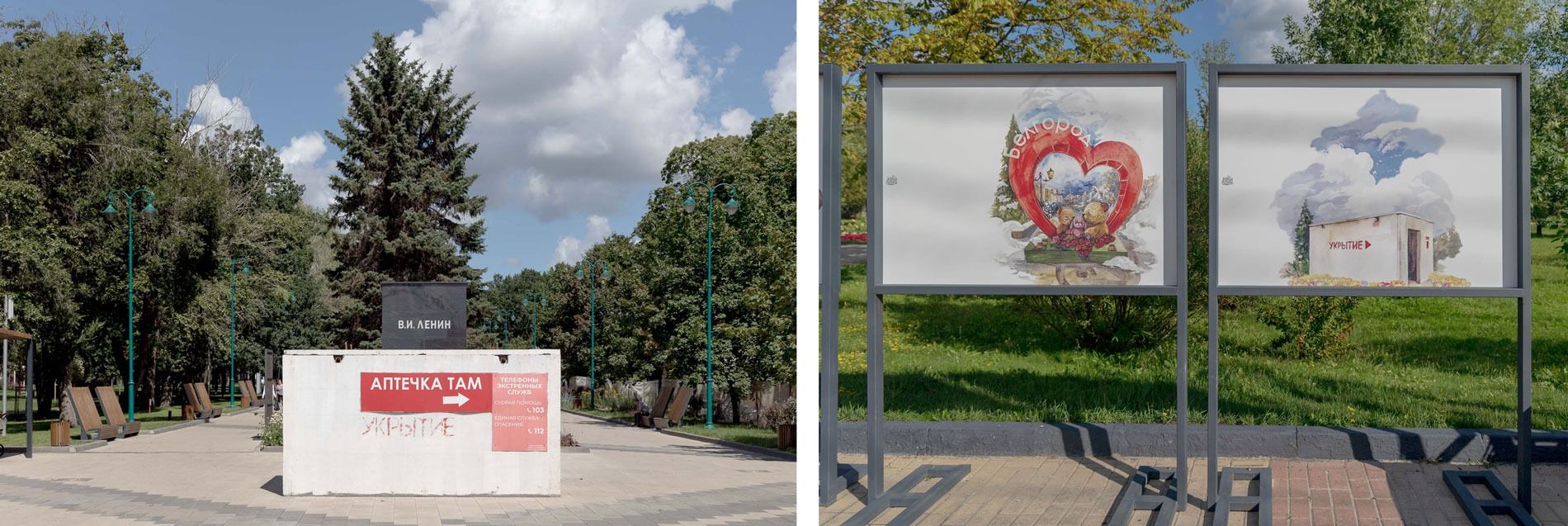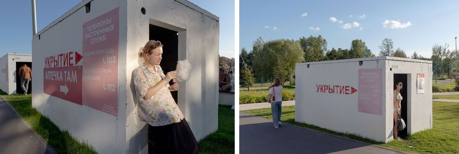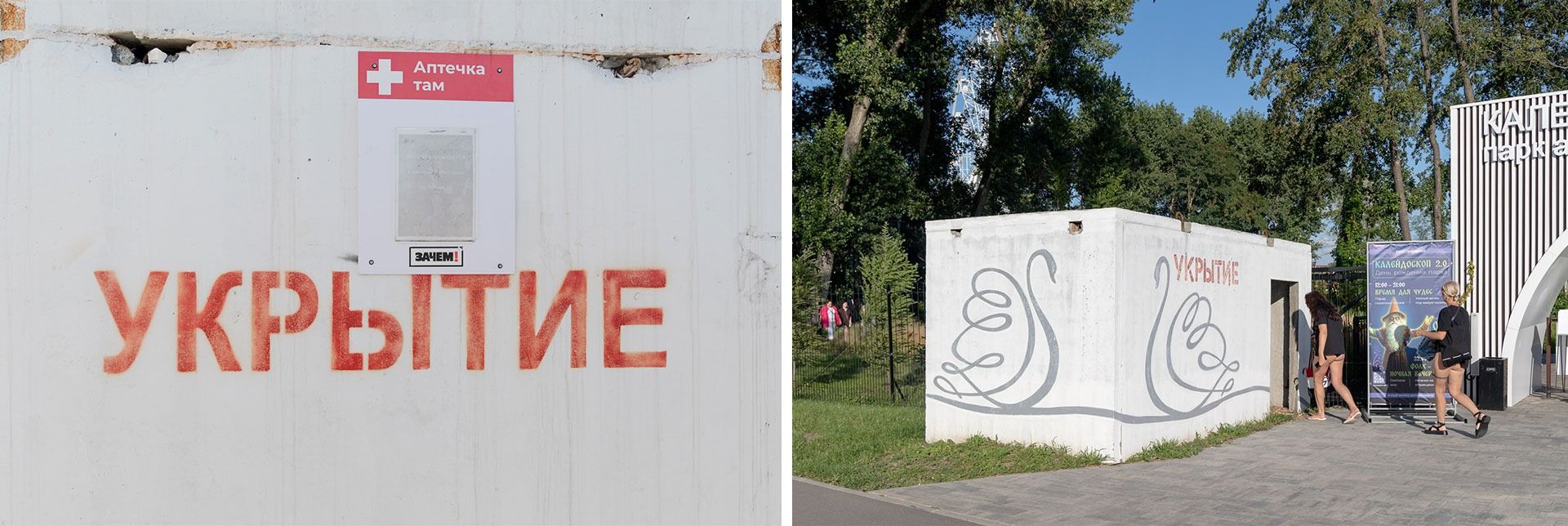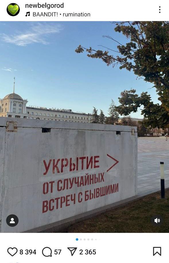 Выпускница отделения медикоммуникаций Белгородского университета Леся вместе с коллегами делает городское медиа «Новый Белгород» — «о культуре Белгорода, о разных мероприятиях, о событиях, в общем, о всём хорошем и почти ни о чём плохом». Она расссказывает, что с год назад в редакции появилась идея как-то переосмыслить укрытия и сделать их не такими устрашающими на вид. Сотрудники сфотографировали укрытия, прифотошопили к ним разные безобидные и смешные надписи и выложили получившиеся изображения в соцсети. Понравилось не всем:
