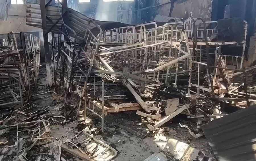 - Характер разрушений. Эксперты обратили внимание, что разрушения в ангаре не соответствовали удару мощной ракеты извне. Отсутствовал воронкообразный кратер или характерные пробоины от боевой части HIMARS. Международные военные специалисты (в том числе в анализе CNN) заключили, что вероятность попадания HIMARS близка к нулю, а наиболее вероятной причиной пожара стал термобарический или зажигательный заряд внутри здания. Анализ видео с места трагедии показал, что металлические кровати внутри барака выгорели дотла, но при этом каркас строения остался цел — такой эффект дает объемный термобарический взрыв, а не направленный удар ракеты. Кроме того, многие окна барака уцелели, что трудно объяснить при внешнем обстреле, но согласуется с версией внутреннего взрыва малой мощности (источник).